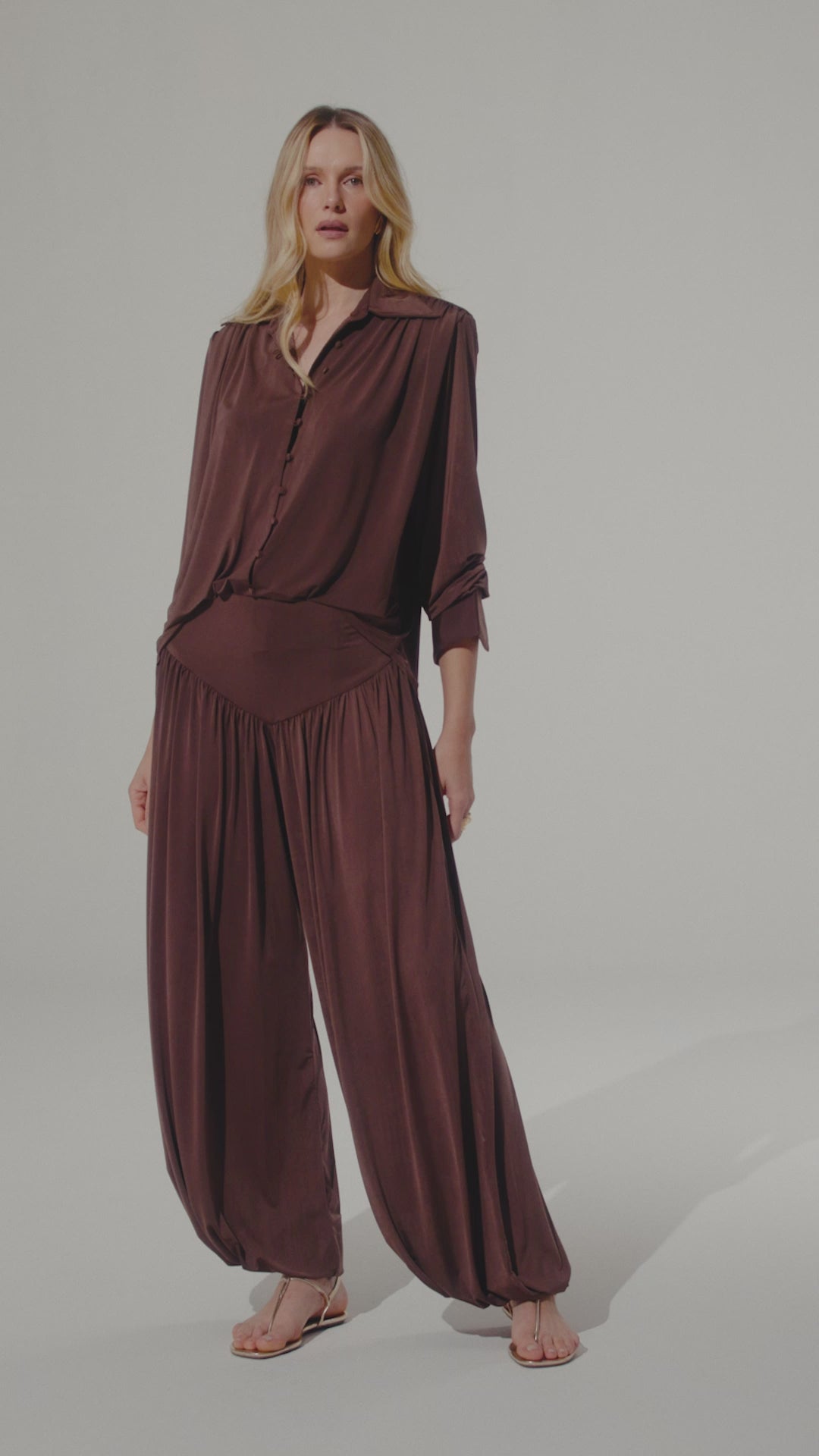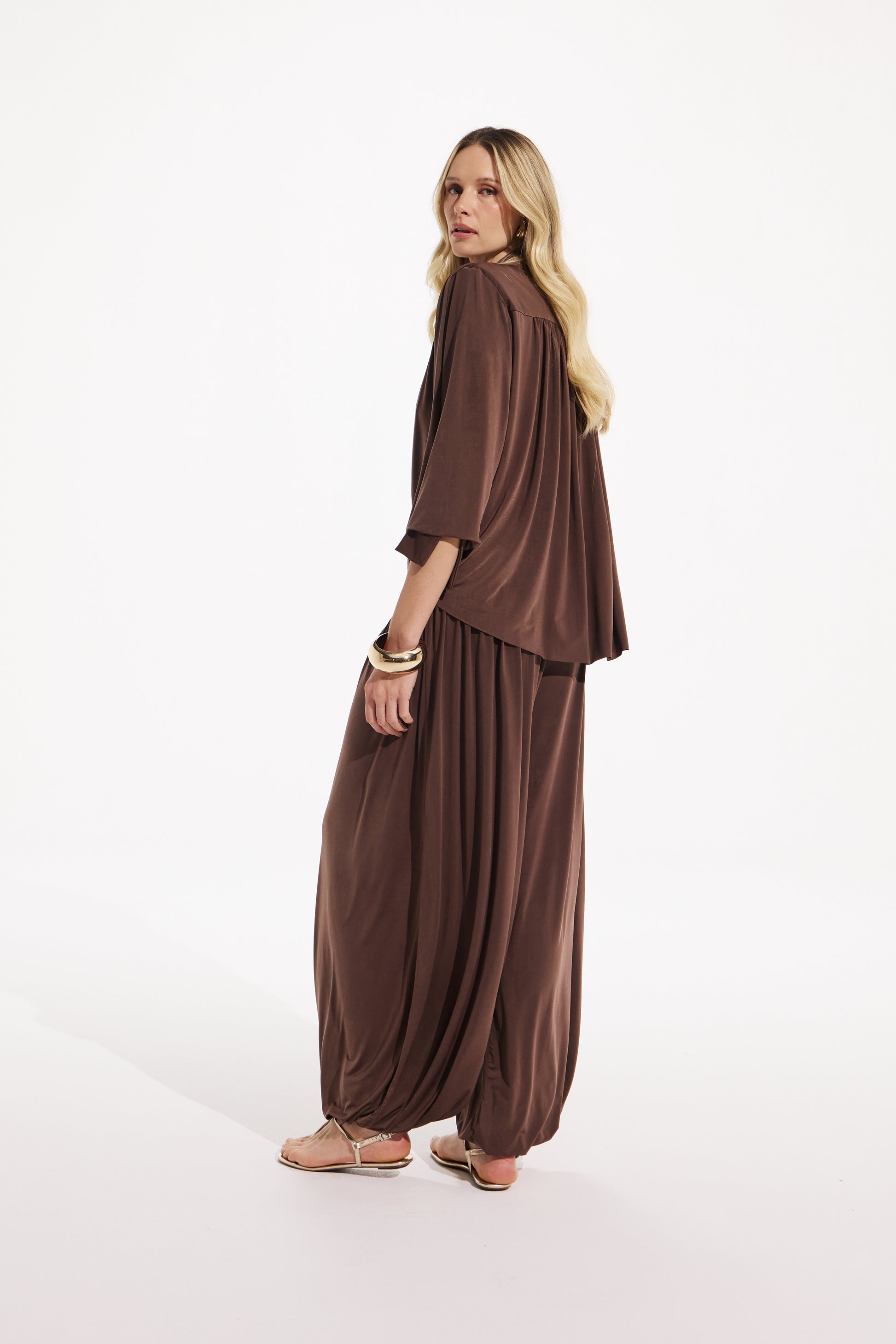 A Blusa Helô combina leveza e caimento impecável graças à malha, que oferece toque macio e movimento fluido. O design valoriza detalhes de alfaiataria, como os botões forrados, que trazem acabamento mais elegante, e a ombreira estruturada, responsável por um shape moderno e alinhado nos ombros.