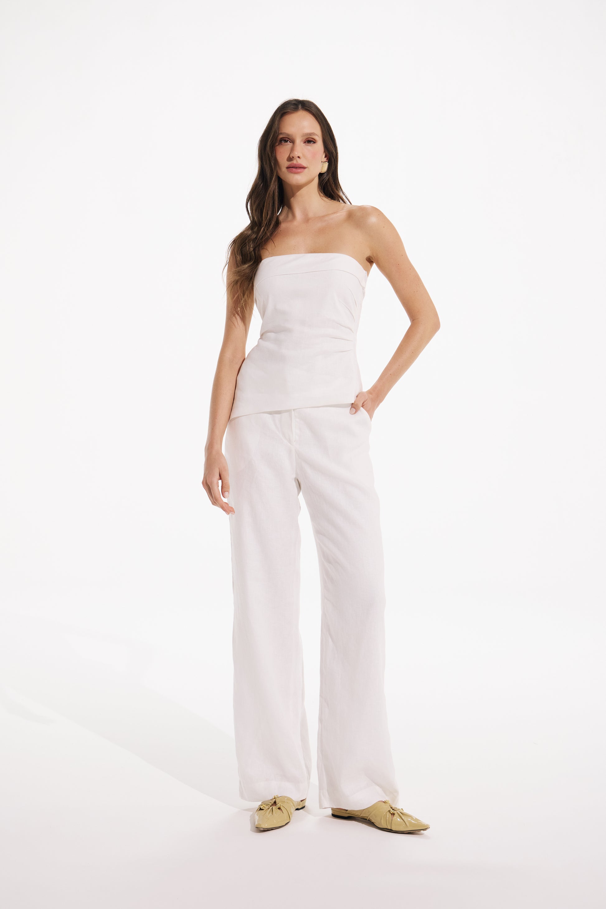 Confeccionada em linho, ela combina frescor natural com o estilo clássico da alfaiataria agora reinterpretado de maneira leve, atual e sofisticada.