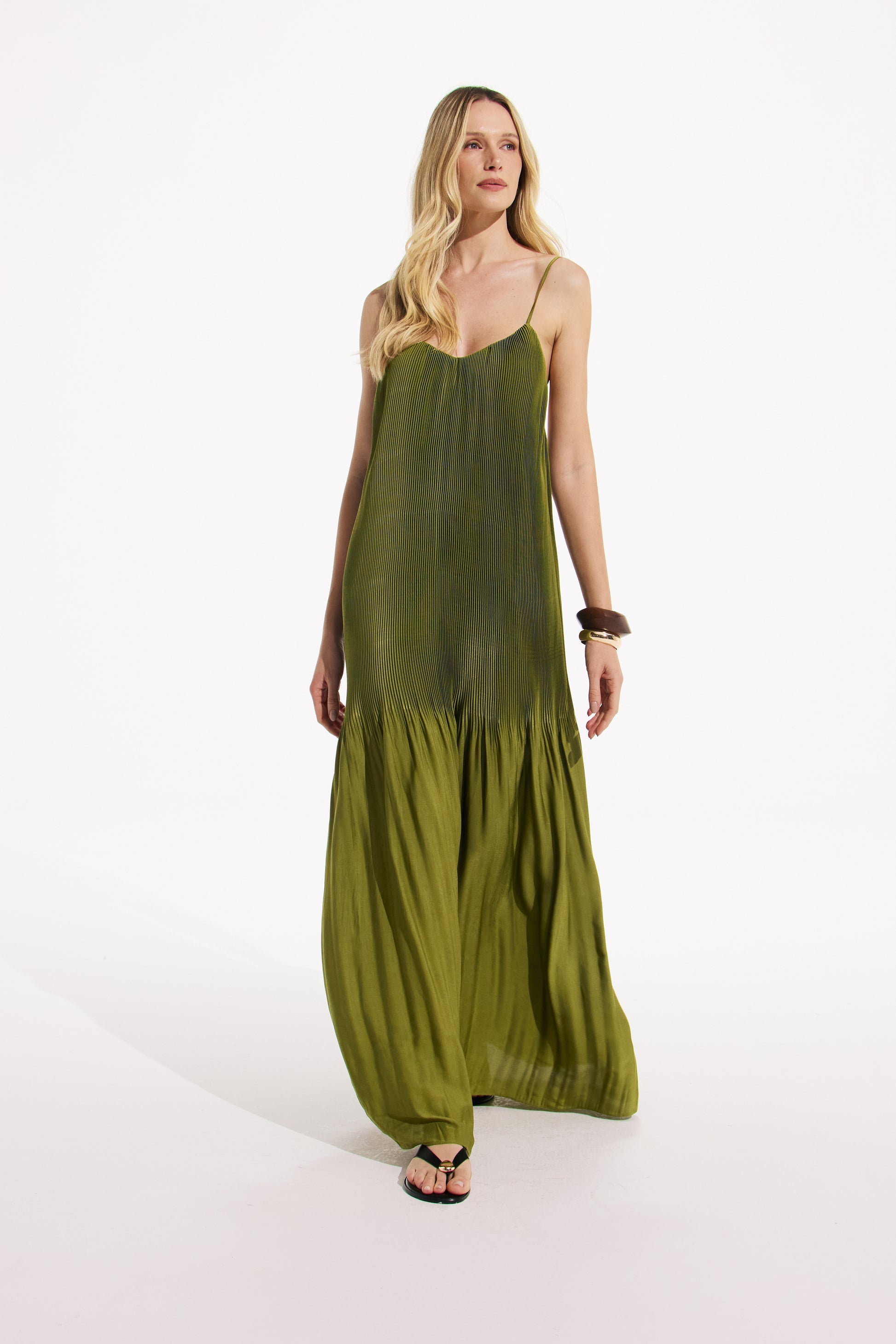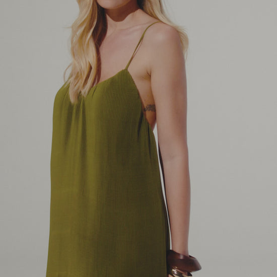 O Vestido Aiani foi pensado para mulheres que buscam elegância com leveza e personalidade. Seu design traz um plissado especial, que cria textura e movimento a cada passo, iluminando o look com um efeito visual que é ao mesmo tempo delicado e marcante.